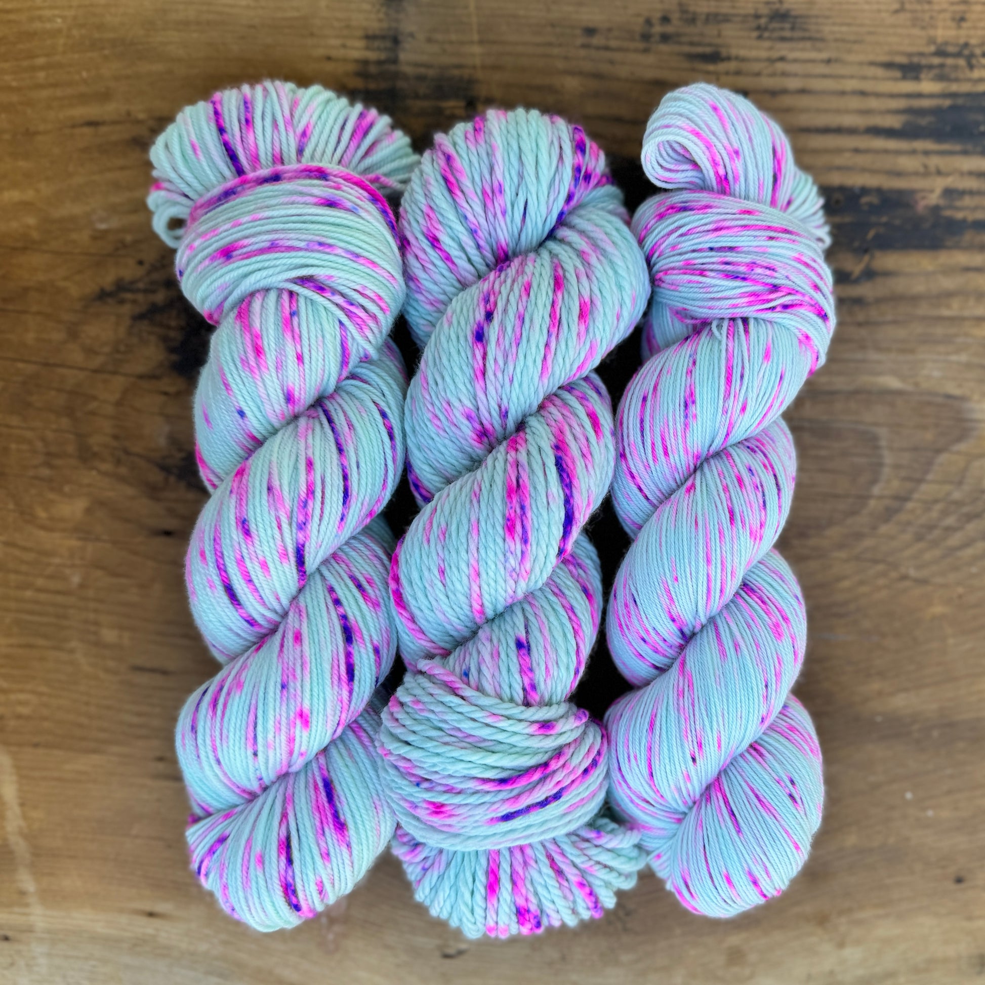 Colorways may vary from dye lot to dye lot. The photos shown are stock photos, but please know we strive to dye all our yarns to match what you see by following tried and true recipes as each skein is individually dyed and can have slight variations. For example some skeins may have more pink where are another may have more blue. This is the joy of hand dyed yarns!